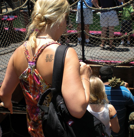 Lines were low enough to get on the Peter Pan ride with little wait, which rounded out our tour of the Dark children’s rides. It really is amazing how wonderful the artwork is on these rides. Peter Pan is probably the best done of the four, the night flight over London is really great, and the Neverland Island is fantastic. We went through a few other rides, all with short to no lines. At each ride for our trip, Sasha has been using the iPhone Disneyland App to check the rides off. It seems silly at first, but a few days in it helps to let us know what we are missing. We rode the double-decker bus, and for the first time ever for all of us, we went on the Columbia sailing ship.