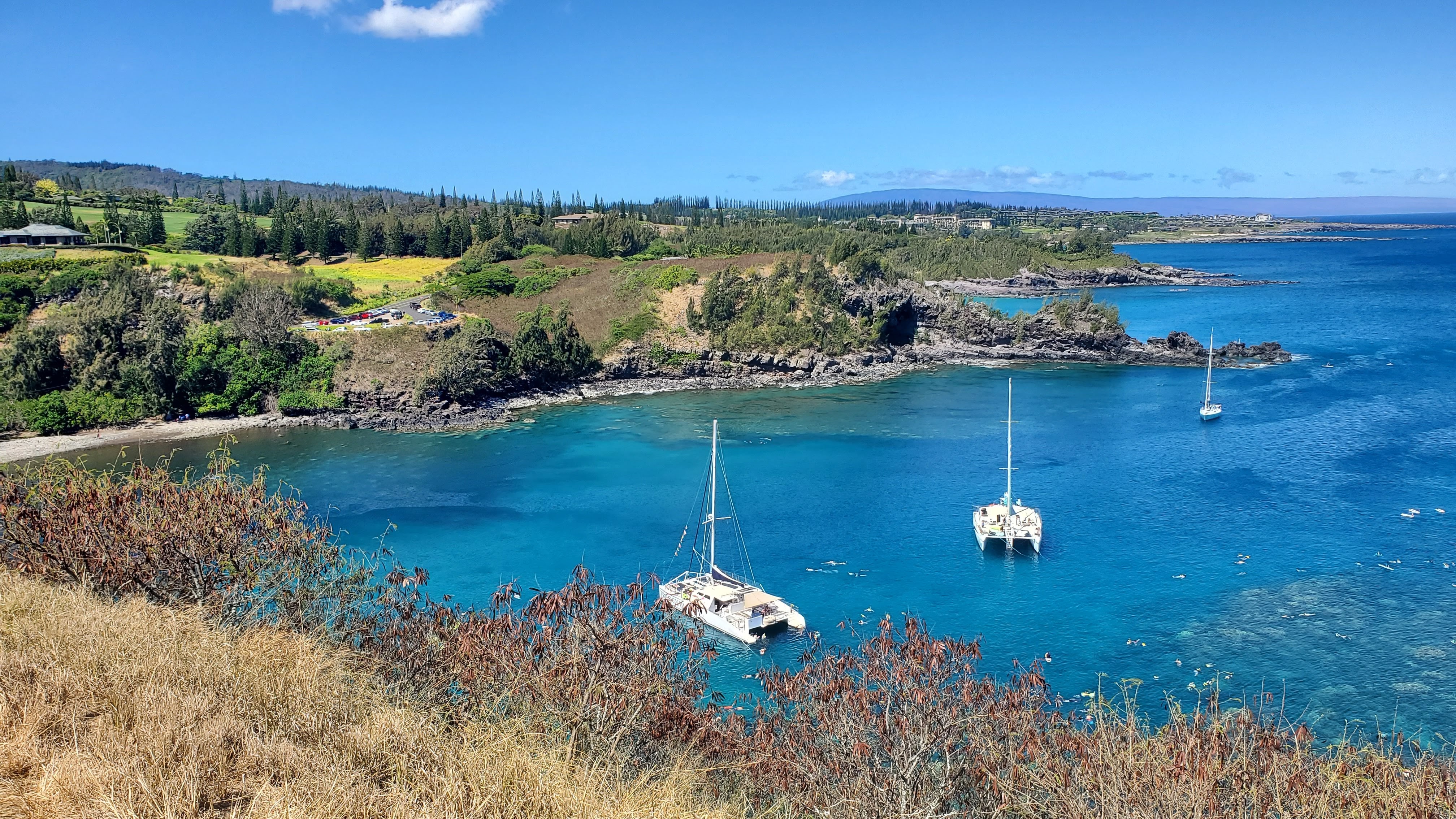 I reserved some snorkeling gear for us – we have a place just across the road, and we got a full week’s of equipment for a good deal. (online coupons help) I loaded all that into the Jeep and once we ha enough coffee and some breakfast we headed north to Honolua Bay.