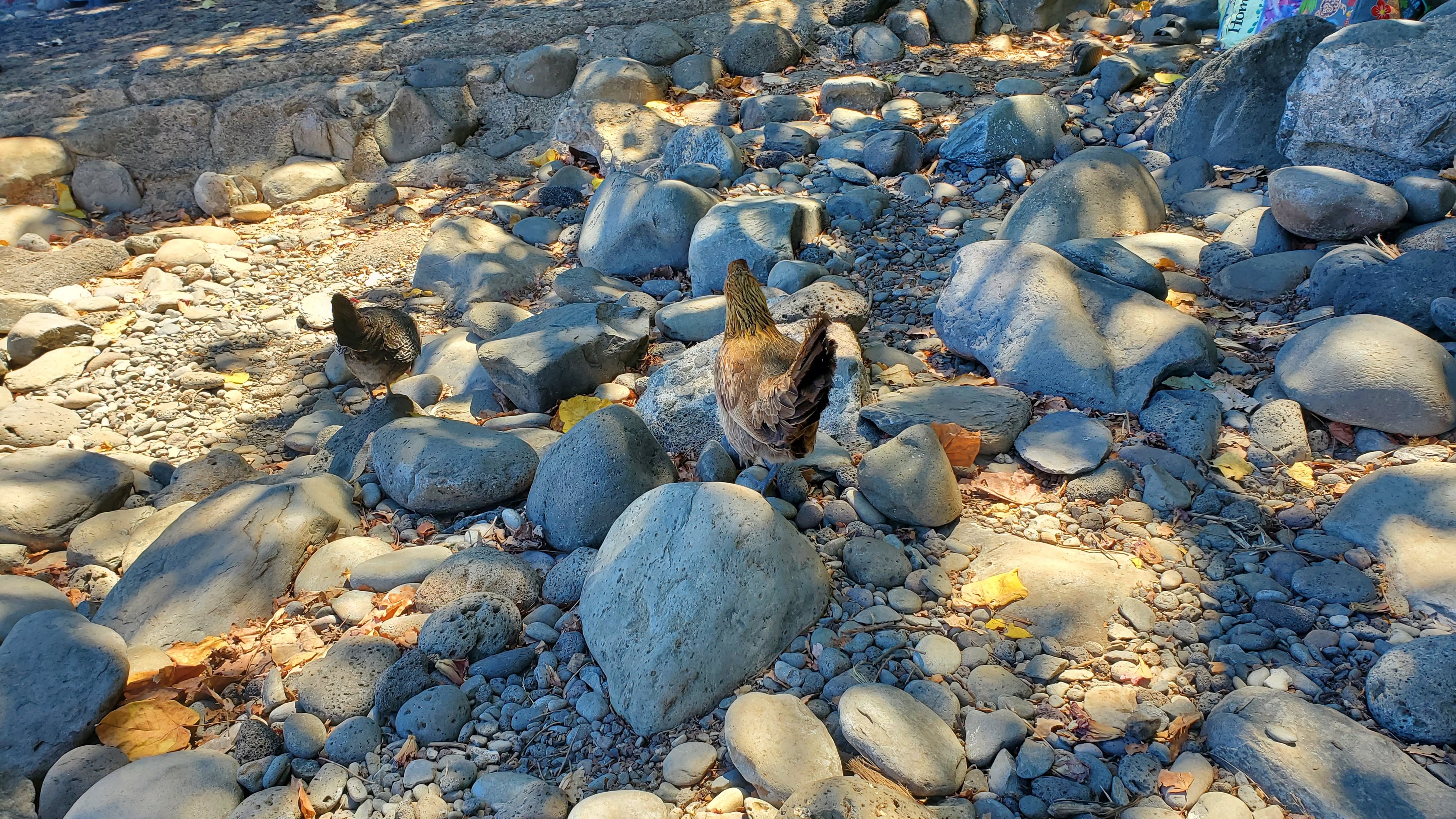 We found this place on our last trip. It’s a great snorkeling beach on the north end of Maui – it’s pretty well known now, and there’s no actual parking so we had to circle around until a spot on the side of the road was available. My parallel parking skills came in handy again and we got a nice spot right near the park entrance. We didn’t leave anything in the car, and headed over to the beach. It’s a bit of a hike in, and we were accompanied by quite a few chickens that live in the area. They were running up to see if we were throwing an food out, then running away just as fast when we didn’t.