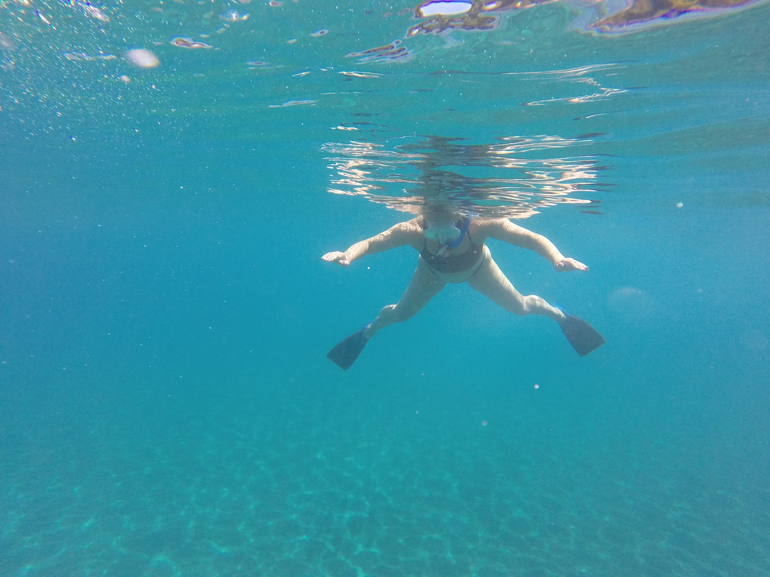 The beach itself was just as we remembered, rocky and crowded. We stashed our stuff near a family that were done swimming and were just feeding chickens. The geal was pretty good, but took a little adjustment to get working. Once we wer out on the water we got our bearings and found that the edges of the bay were the best, with schools hiding and feeding amongst the rocks and coral. I naturally kept my eye out looking for the state fish – the Humuhumunukunkuapua’a. It’s a cool fish, with a cool name.
