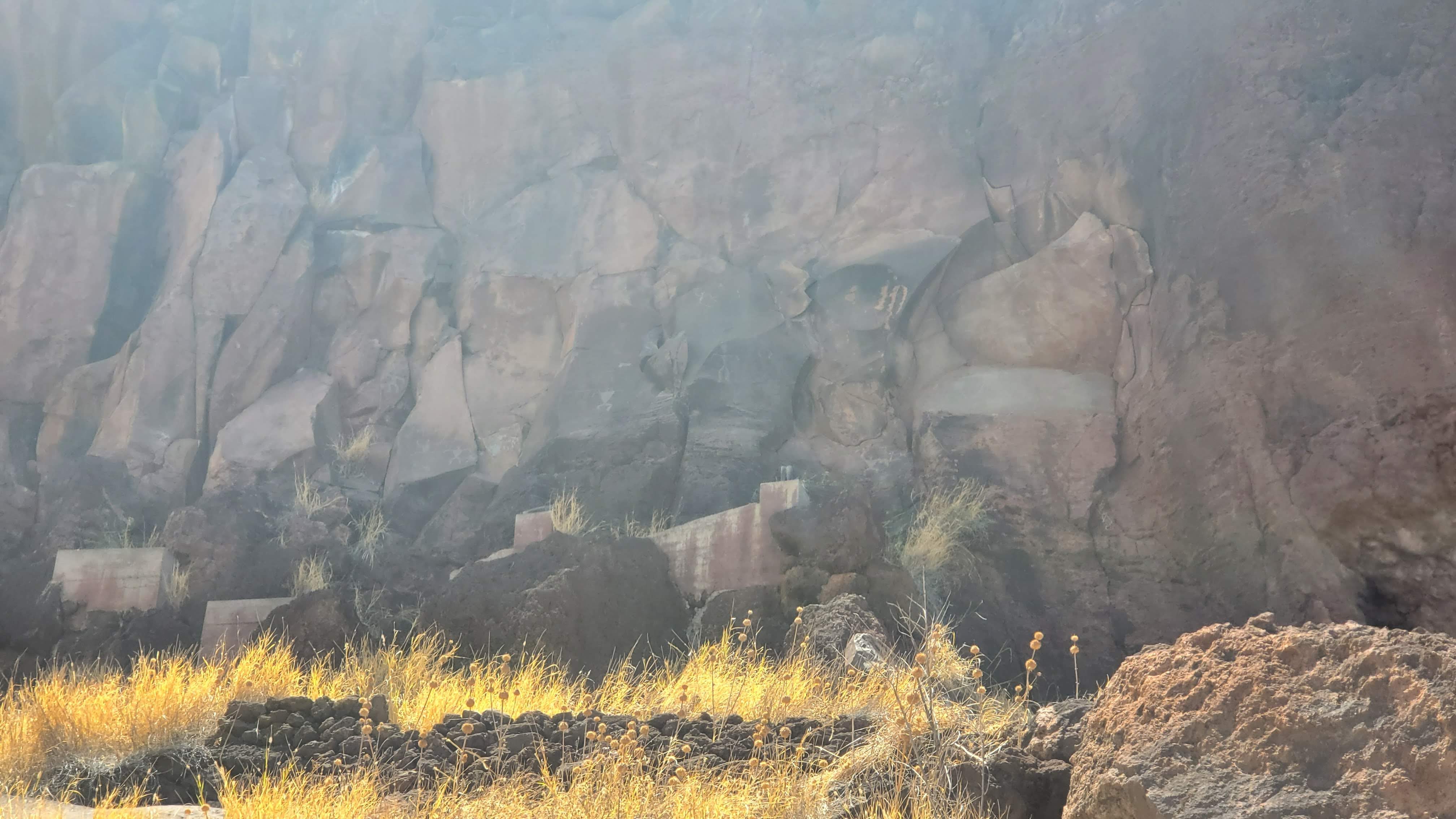 We went after breakfast out to the Olowalu Petroglyphs, it’s a pretty short drive past Lahaina, we actually stopped near the turnoff at a fruit stand right near there. This time we went up a small road looking for a historical marker. Nothing was marked well, so I turned on the Shaka tour – we weren’t using it because we were coming from the wrong direction and not actually following the tour. But it gave us enough clues to find the right spot. Naturally, I parked in the wrong spot and we had to take a hike down the road. But the petroglyphs were up on a rock face above us. We’ve seen petroglyphs before in Mexico, but these were telling a story, figures up on the cliff engaged in something that we weren’t part of but could witness now. I just loved it.