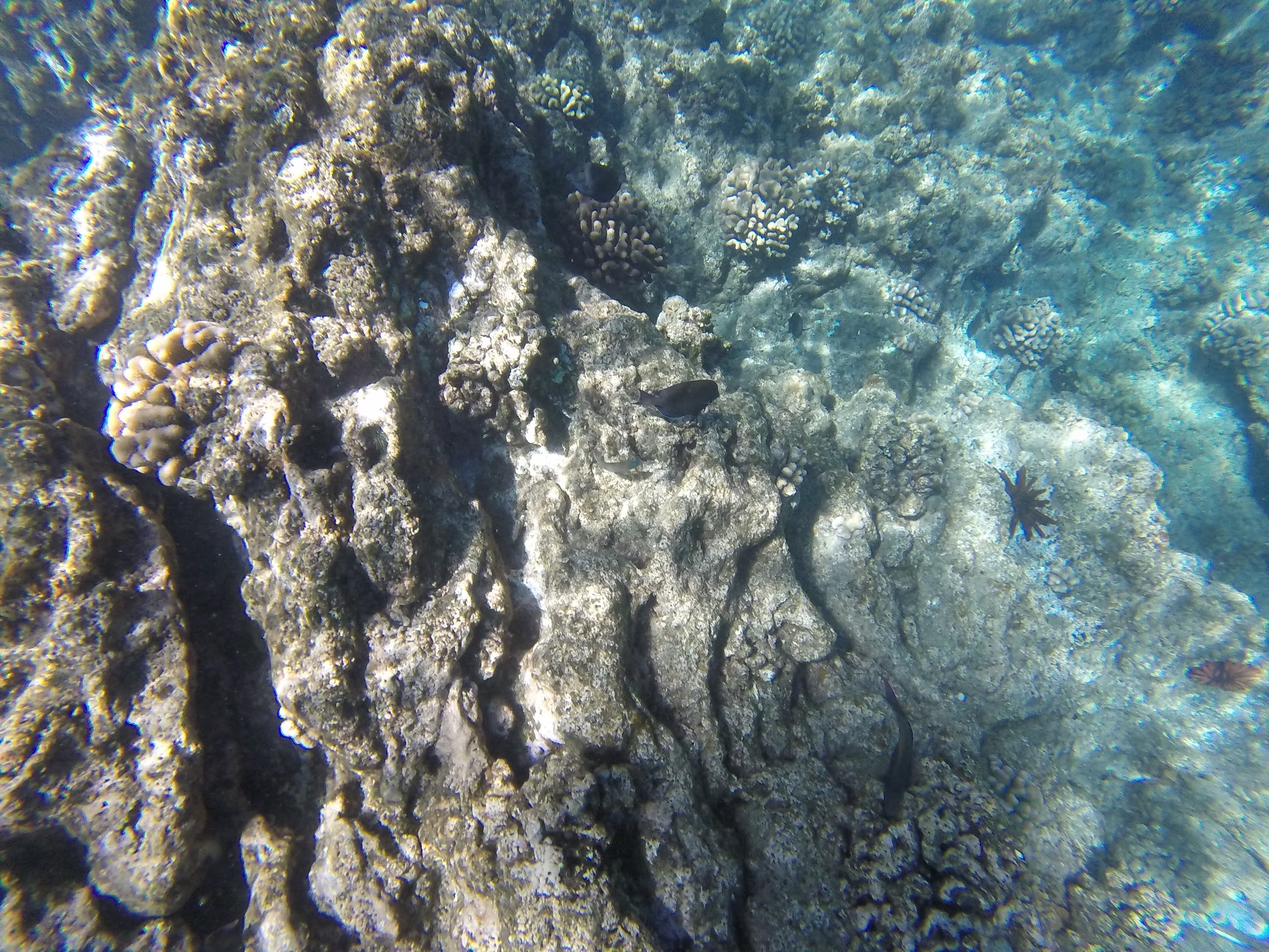 Our main plan was to go snorkel at Black Rock beach. This was actually at the far end of Kaanapali’I, which was a zoo when we went earlier in the week. We drove there and parked in the same Sheraton garage as last time. The beach was a little less crowded. Maybe folks were out planning things for the fourth. We took our gear to a open section of the beach. After the beached we have visited this week we had to admit that this was crowded for a reason. The sand out was perfect. It was the stereotypical Hawaiian tourist beach. I grabbed my gear and it was super easy to walk out into the water. Nothing in my way to get out.