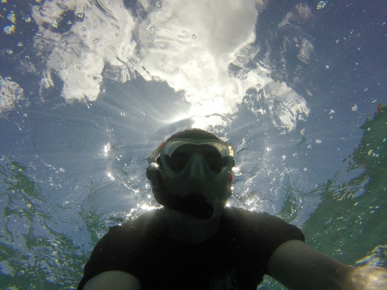 Yulia was eager to get out – and she was the first in the water. I tried to go right after her – but the ramp got crowded with a family who didn’t know how to snorkel, so they blocked the space while getting instructions. I walked over to another ramp and geared up and stepped in.