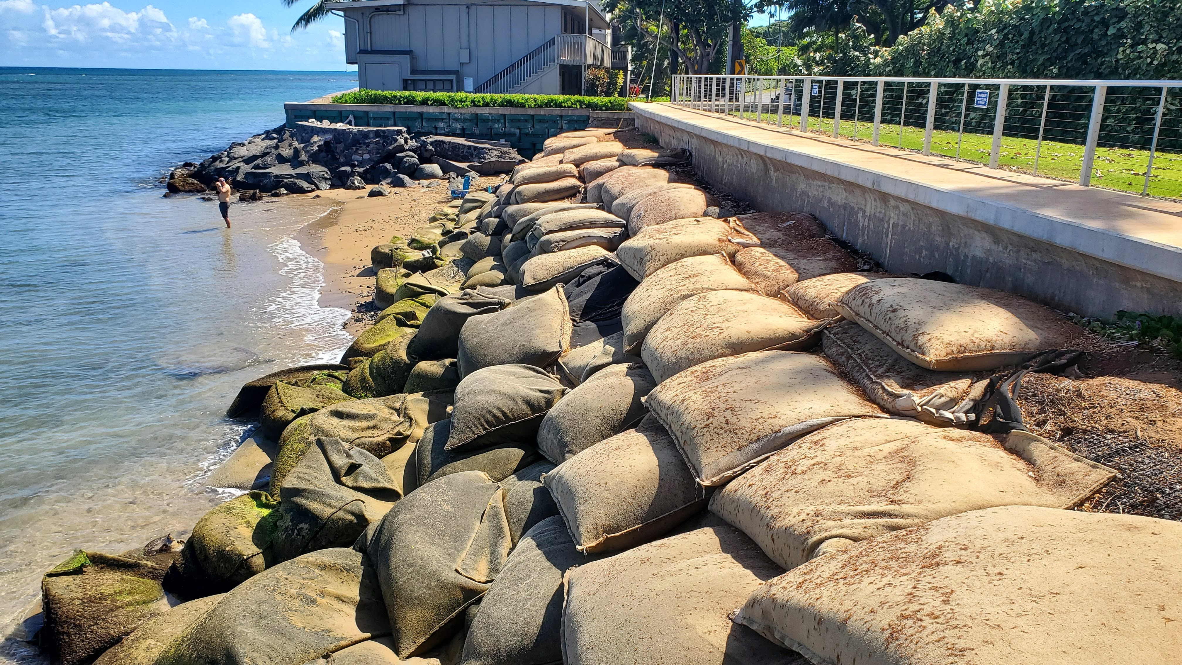 We walked back over the sandbags. At low tide you could see how far down the went. It looked like it was close to 20 feet here. I can’t imagine that when this place was built the original dune was that high, so erosion has been crazy on this stretch of beach. I really wonder if even the sea wall will work long term. Crazy.