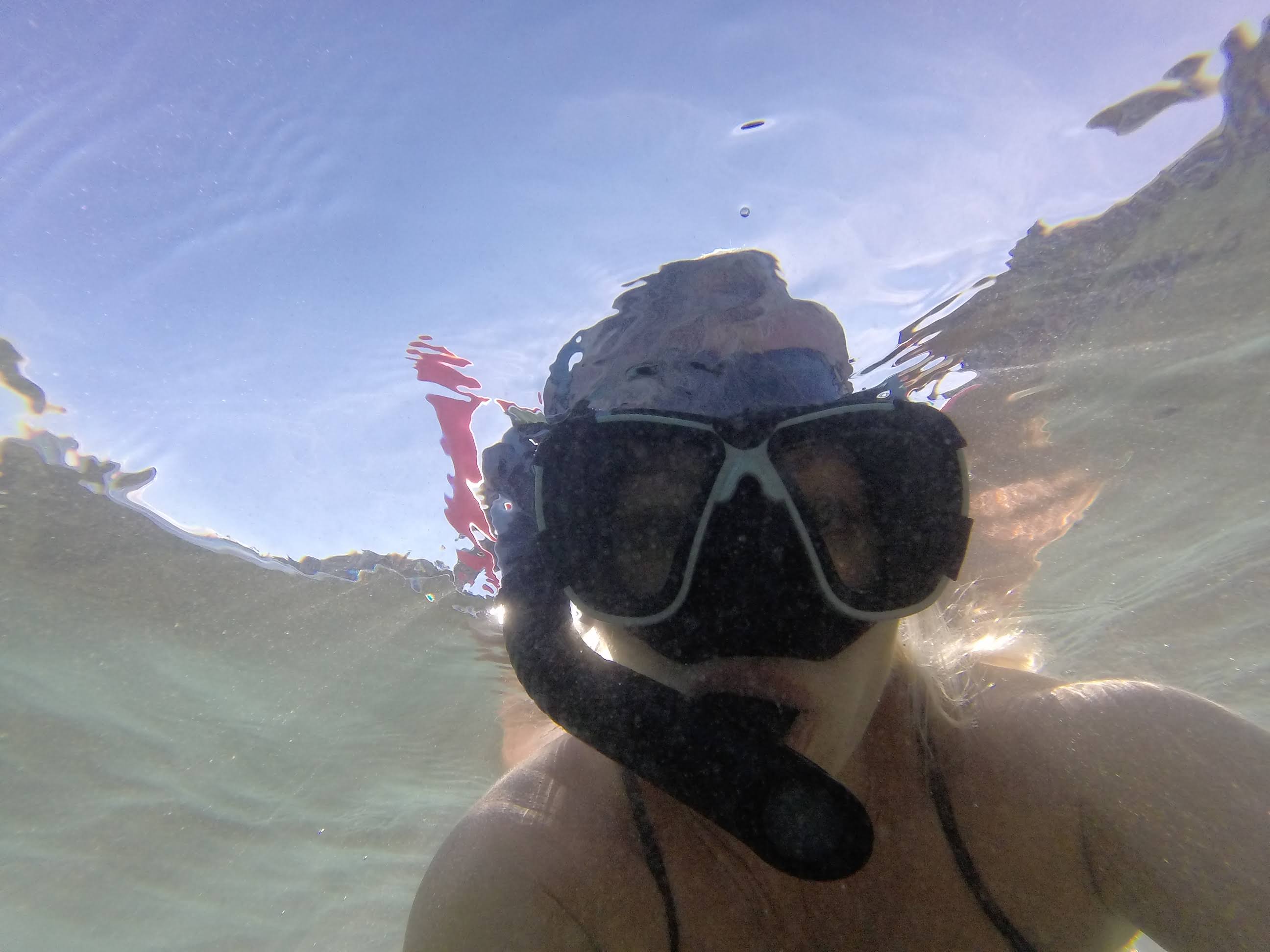 I could see Yulia sticking around the same spot the whole time. She was floating in the shallow water and kept circling the same spot. She came up after a bit and wanted my to download what she took from our GoPro. She had some really nice shots from a single rock that was close to shore. it was all small fish but they were cute and darting about. We walked back together and waded out a bit to look at the same rock from shore. There really were a lot of fish swimming about in a small space. The rock provided cover and food so you didn’t have to snorkels as such, just look down.