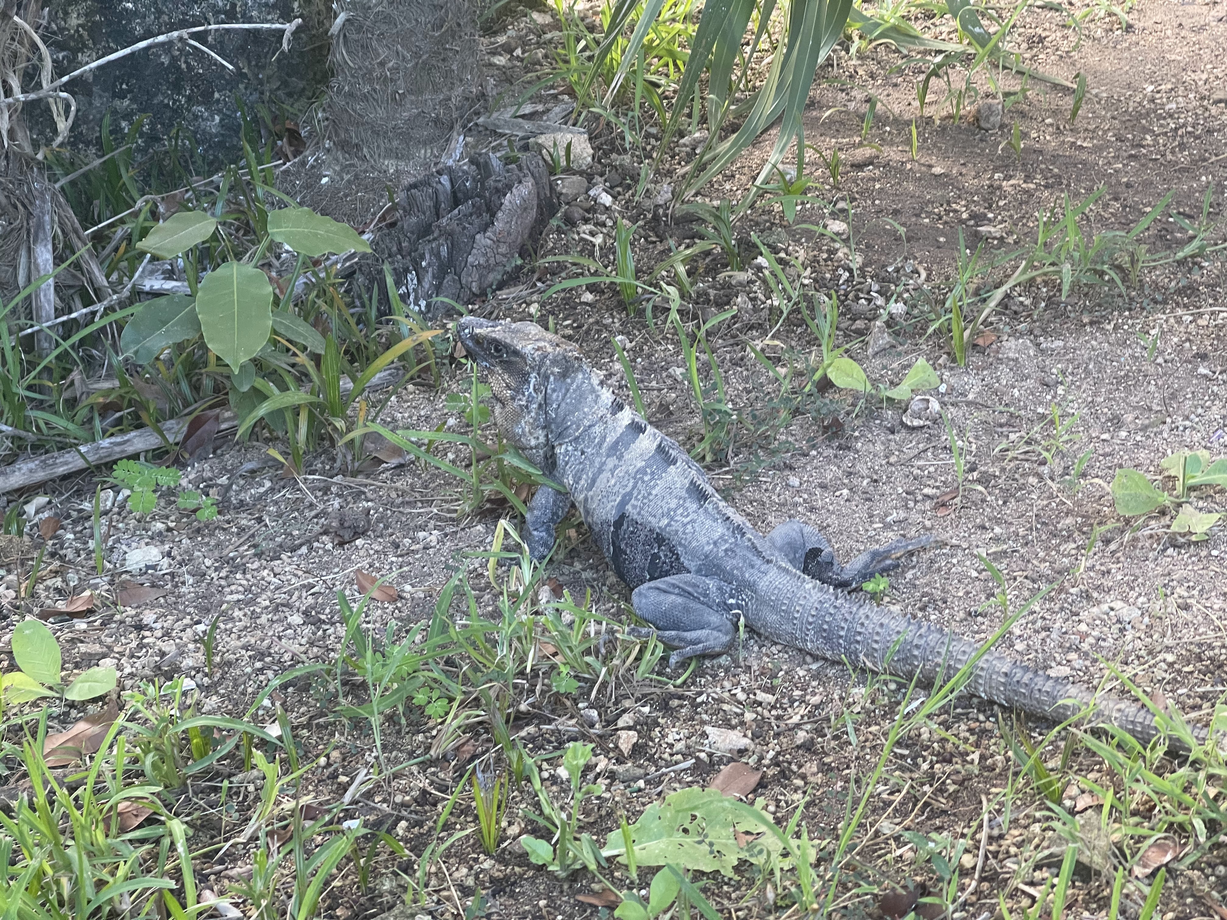 Yulia came back after some indeterminate time and was going crazy. I threw some clothes on and she pulled me downstairs to the garden below our room. First thing I saw was a huge Iguana. Behind that in the garden was a little animal that looked like an Anteater Racoon Cat. It was cure with spindly legs, and wandered off. The iguana was not amused and wandered into taller grass. There were all kinds of Iguanas everywhere we walked. You literally had to be careful to not step on one.
